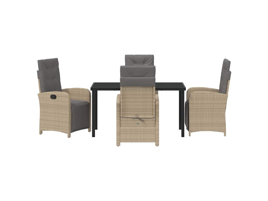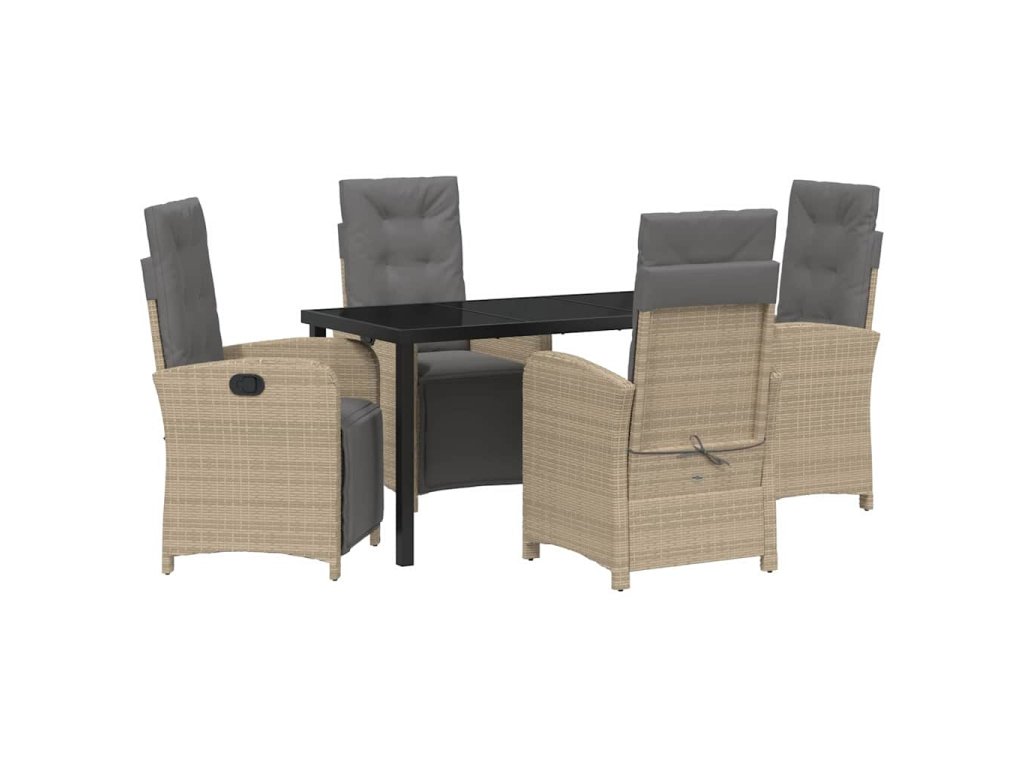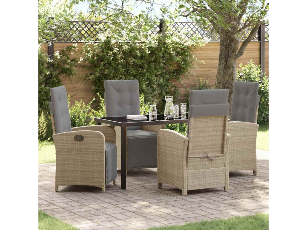 - Funkční komponenty: Vyleštěná skleněná deska dodává setu styl a usnadňuje údržbu. Nastavitelné opěrky zad poskytují různé možnosti, jak si užít lenošení po jídle a přizpůsobují se potřebám vašich hostů.