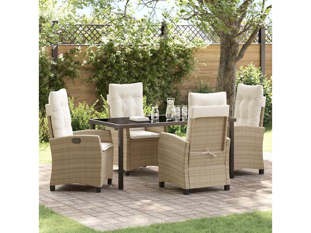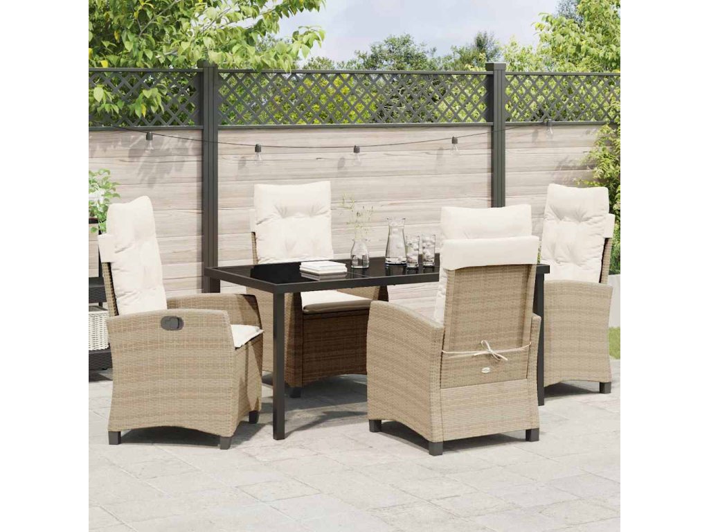 Zahradní jídelní souprava s polštářem 5 pcs Béžová polyratan 3380396