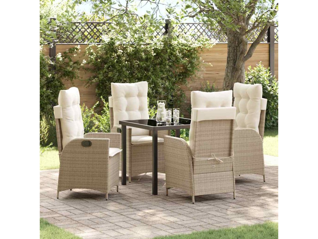 Zahradní jídelní souprava s polštářem 5 pcs Béžová polyratan 3380506