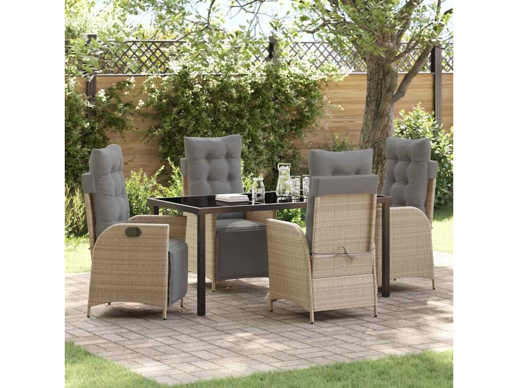 Zahradní jídelní souprava s polštářem 5 pcs Béžová polyratan 3380564