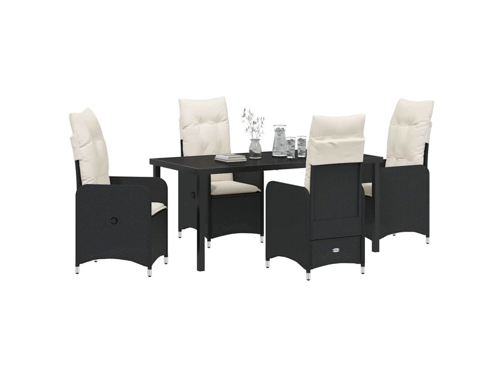 Zahradní jídelní souprava s polštářem 5 pcs Černá Poly ratan 3379635