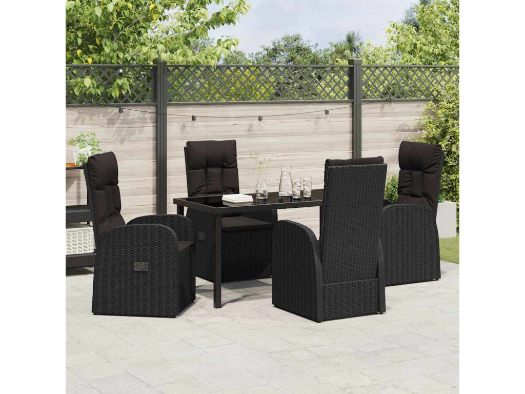 Zahradní jídelní souprava s polštářem 5 pcs Černá polyratan 3379508