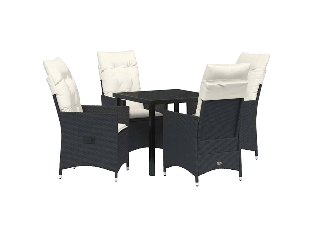 Zahradní jídelní souprava s polštářem 5 pcs Černá polyratan 3379535