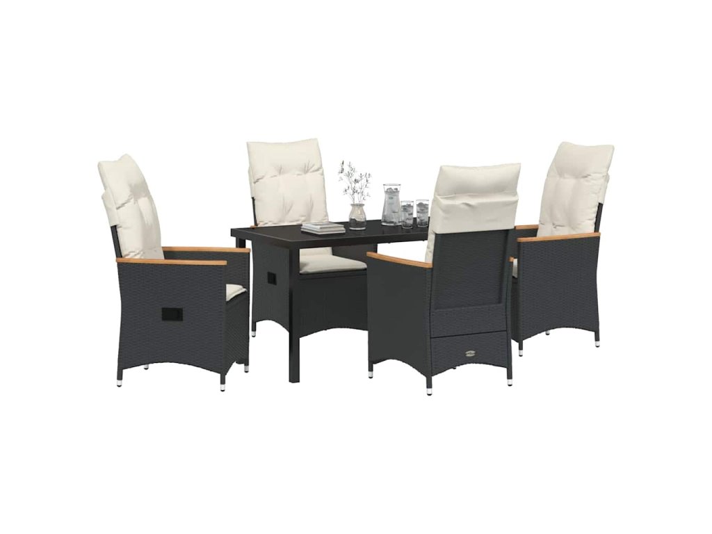 Zahradní jídelní souprava s polštářem 5 pcs Černá polyratan 3379606