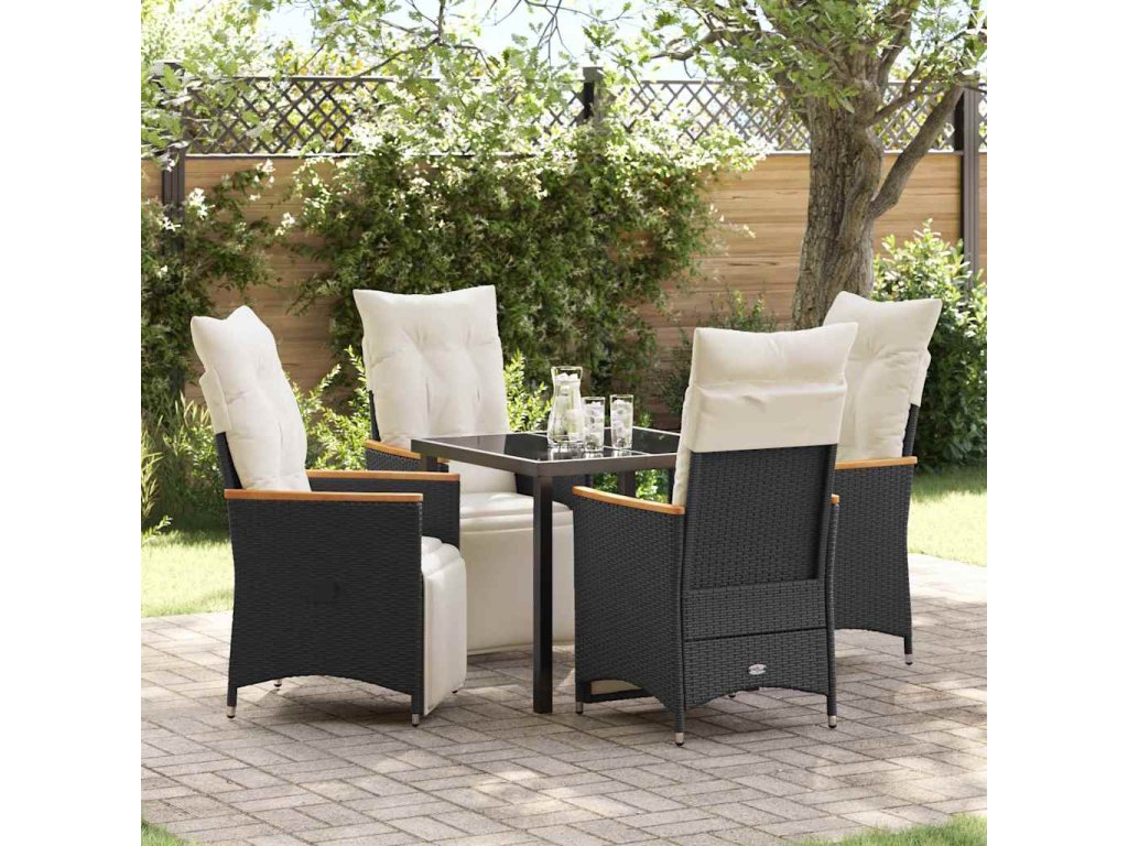 Zahradní jídelní souprava s polštářem 5 pcs Černá polyratan 3379612
