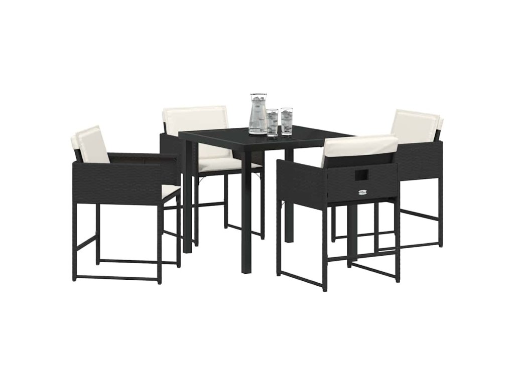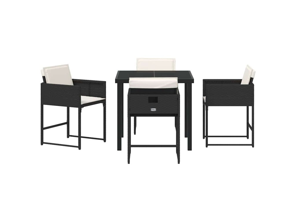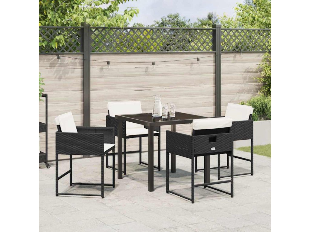 Zahradní jídelní souprava s polštářem 5 pcs Černá polyratan 3380004