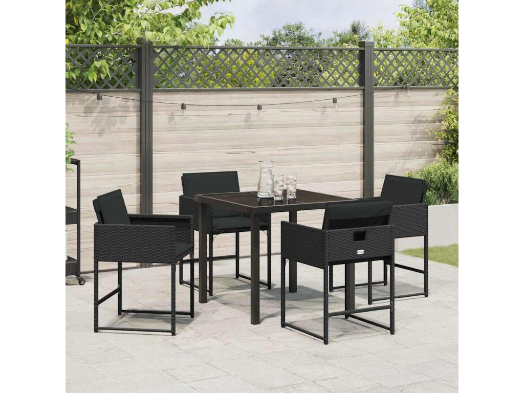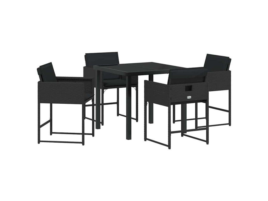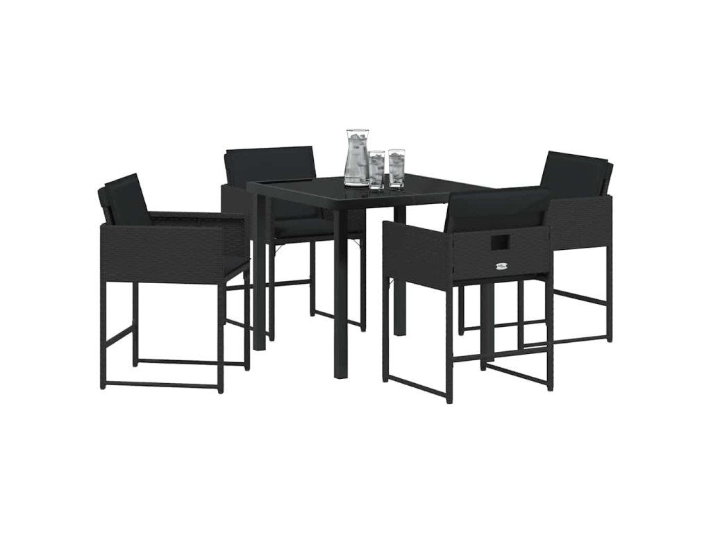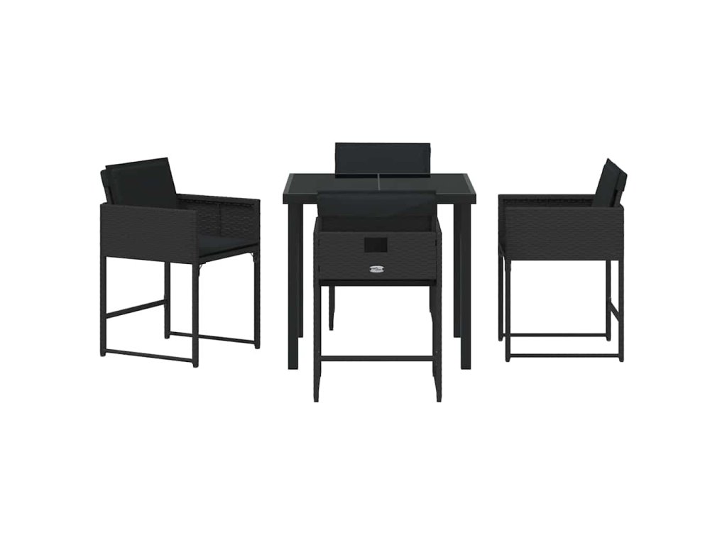 Zahradní jídelní souprava s polštářem 5 pcs Černá polyratan 3380008