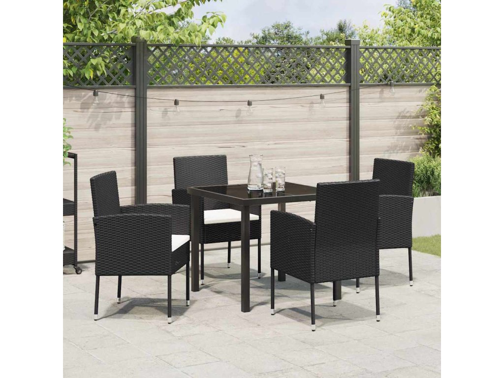 Zahradní jídelní souprava s polštářem 5 pcs Černá polyratan 3380051