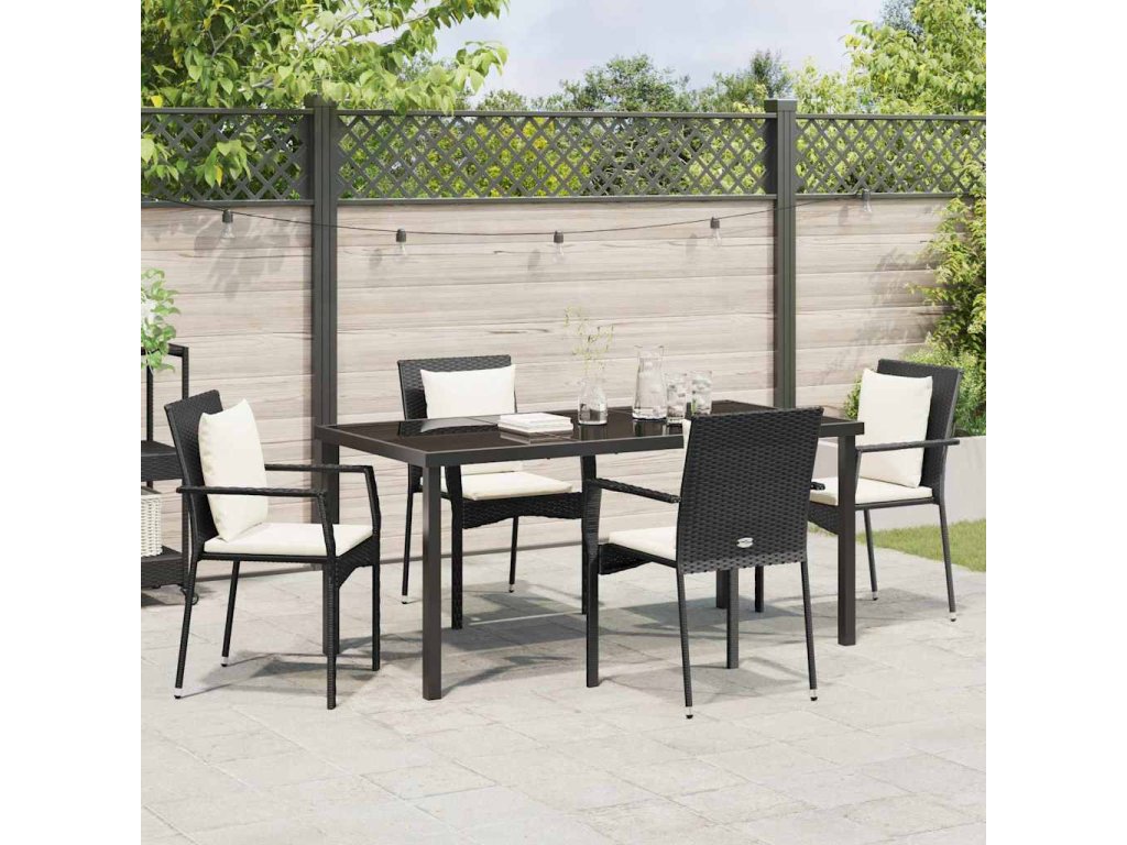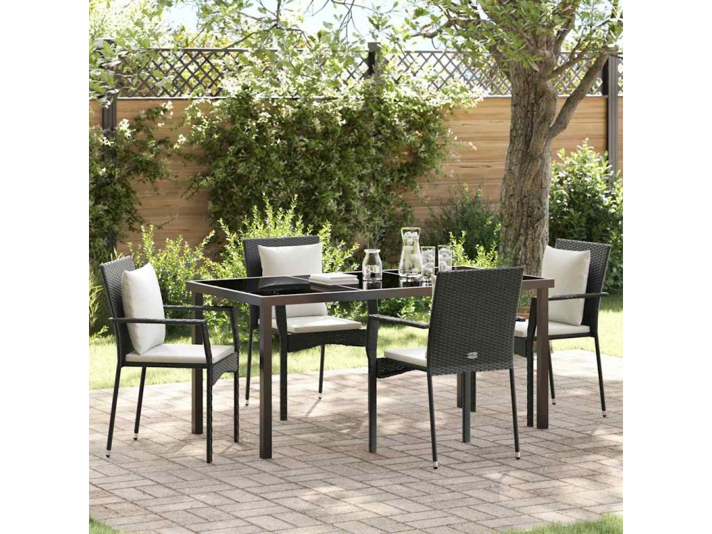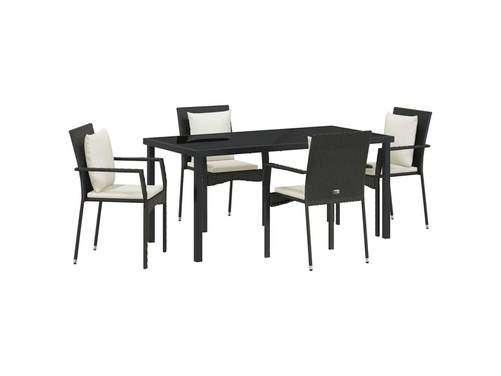 Zahradní jídelní souprava s polštářem 5 pcs Černá polyratan 3380074