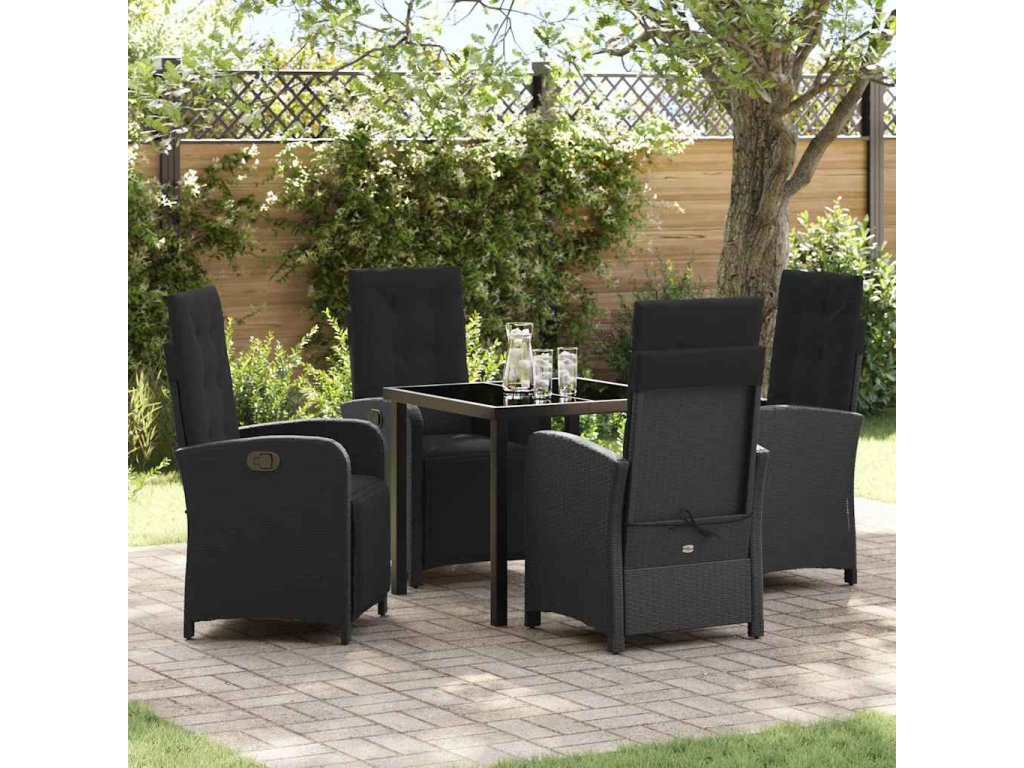 Zahradní jídelní souprava s polštářem 5 pcs Černá polyratan 3380310