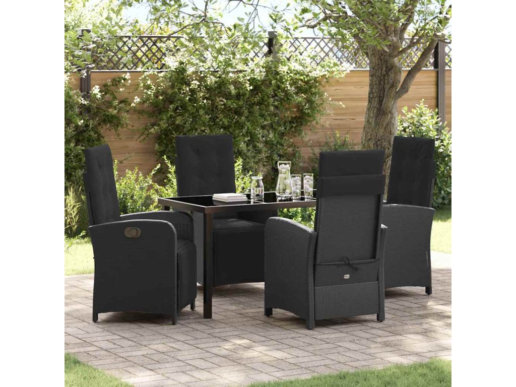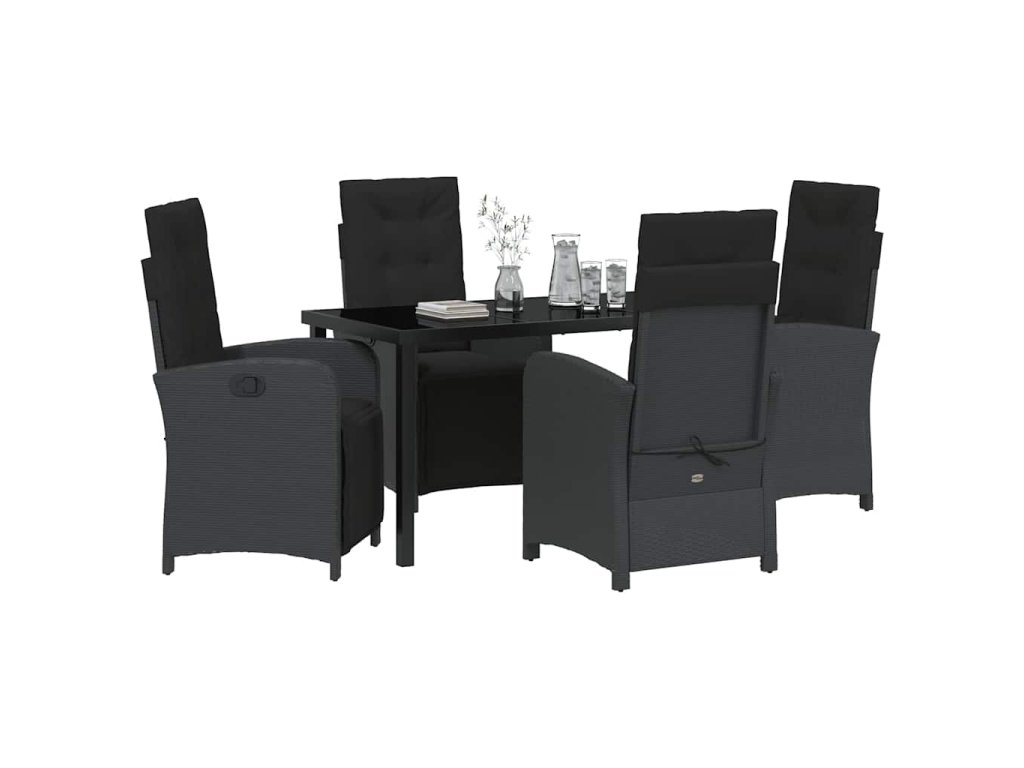 Zahradní jídelní souprava s polštářem 5 pcs Černá polyratan 3380311
