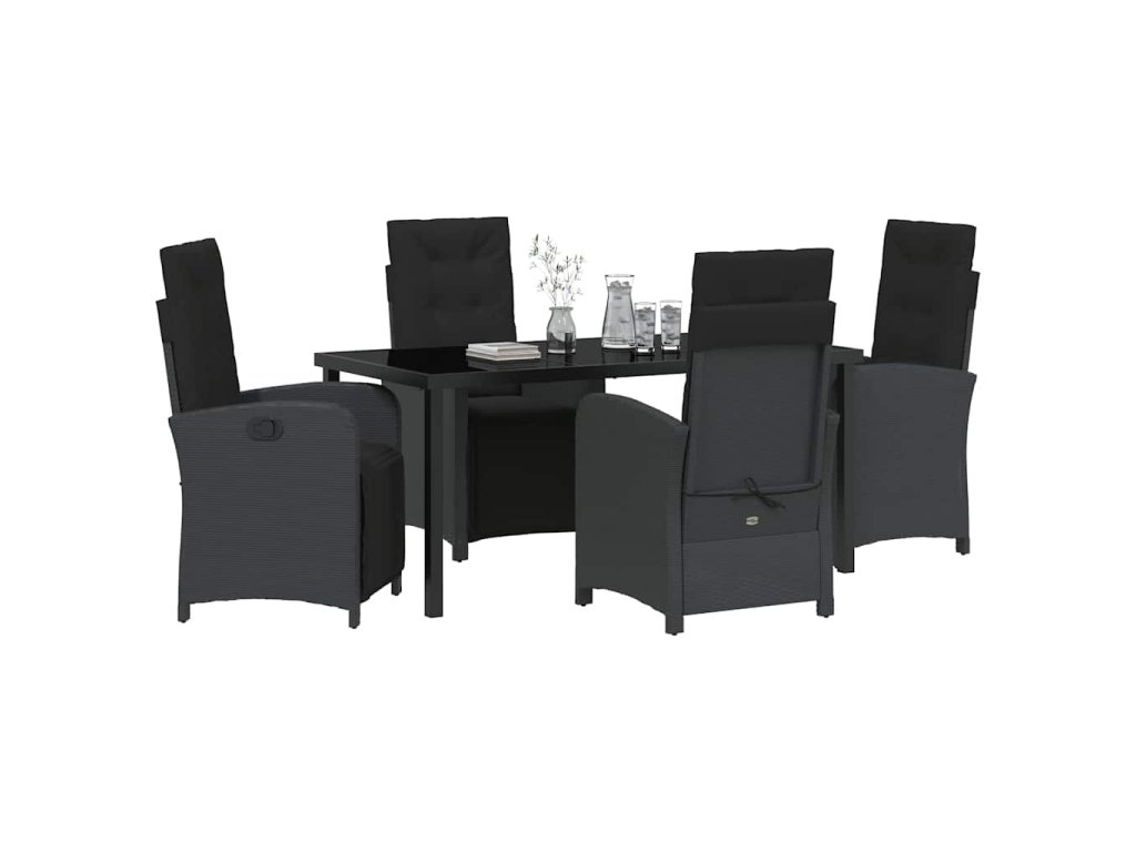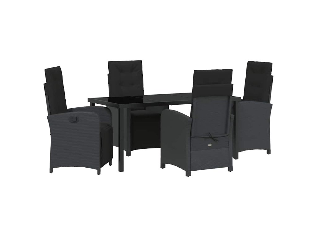 Zahradní jídelní souprava s polštářem 5 pcs Černá polyratan 3380312