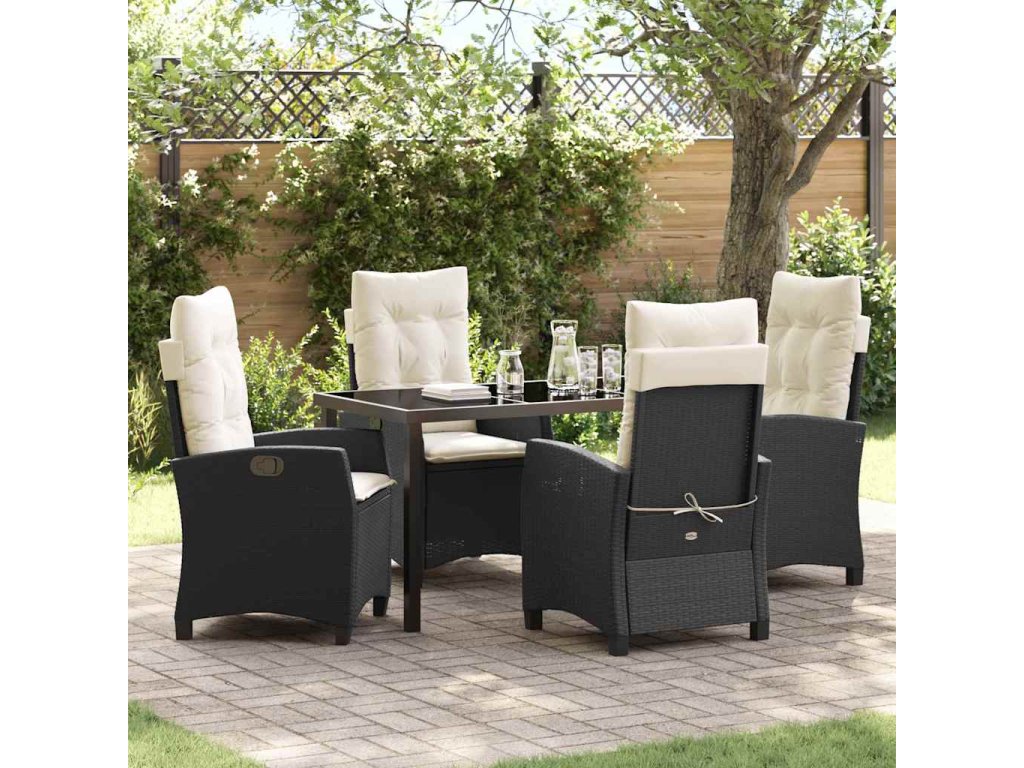 Zahradní jídelní souprava s polštářem 5 pcs Černá polyratan 3380367