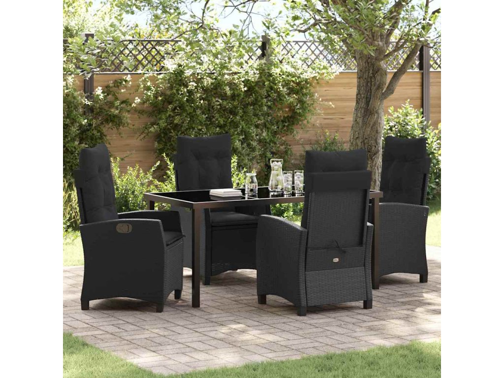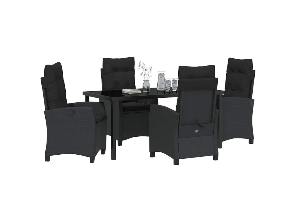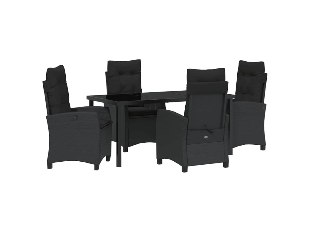 Zahradní jídelní souprava s polštářem 5 pcs Černá polyratan 3380375