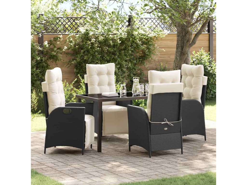 Zahradní jídelní souprava s polštářem 5 pcs Černá polyratan 3380528