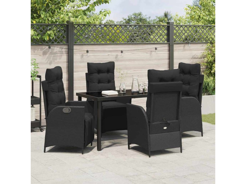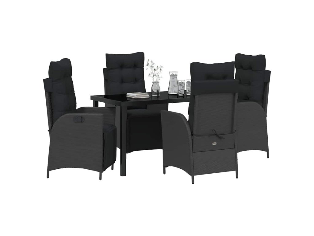 Zahradní jídelní souprava s polštářem 5 pcs Černá polyratan 3380535