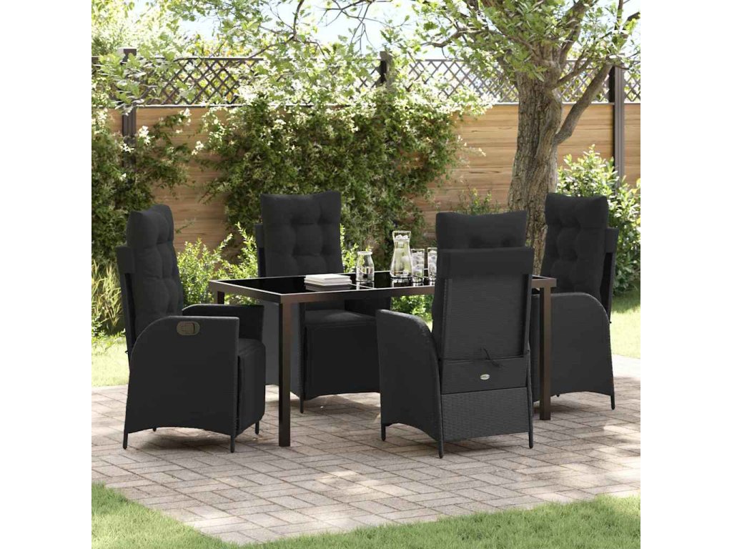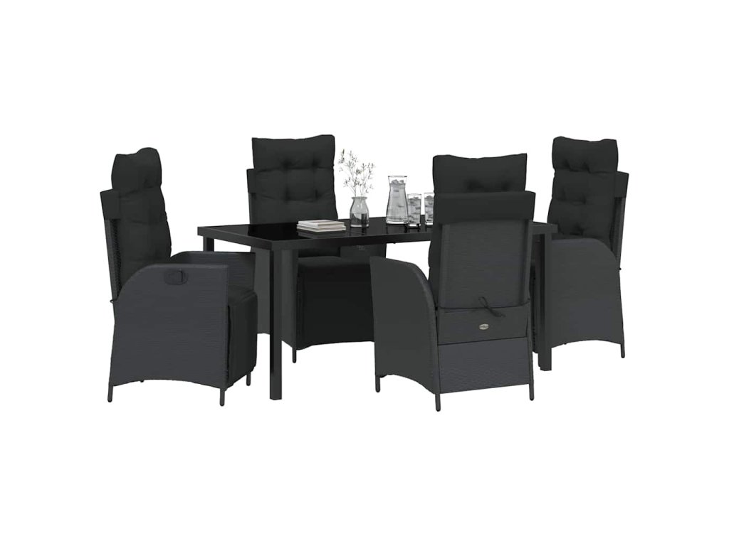 Zahradní jídelní souprava s polštářem 5 pcs Černá polyratan 3380536