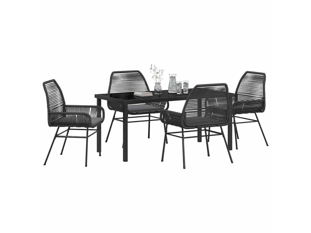 Zahradní jídelní souprava s polštářem 5 pcs Černá polyratan 3380872