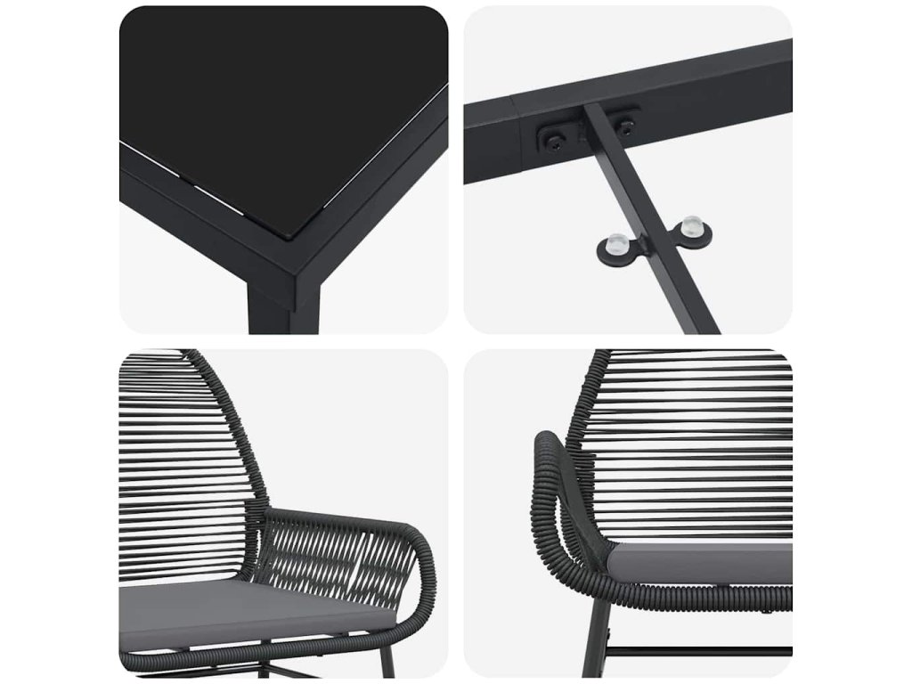 - Poly ratanový exteriér: Naše zahradní souprava má odolný poly ratan, co dobře snáší různé počasí. Je to materiál, který vypadá skvěle a dlouho vydrží.