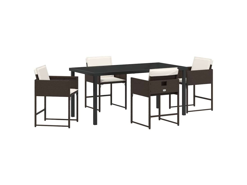 Zahradní jídelní souprava s polštářem 5 pcs Hnědá Poly ratan 3380018
