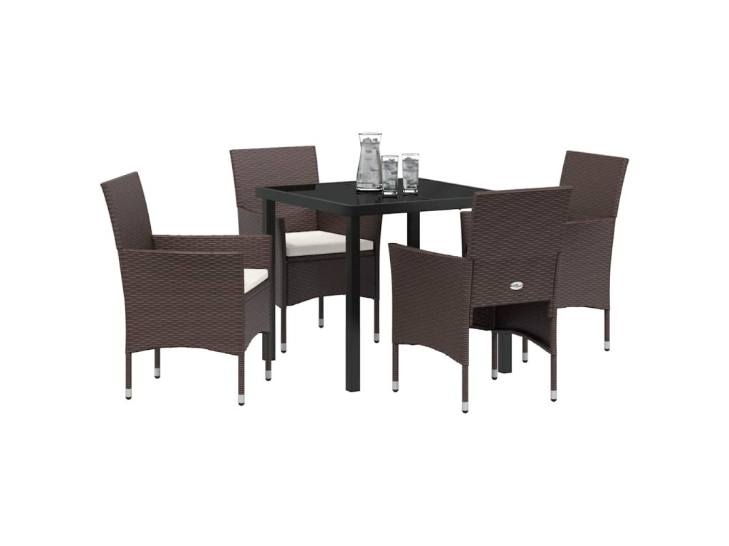 Zahradní jídelní souprava s polštářem 5 pcs Hnědá polyratan 3379745