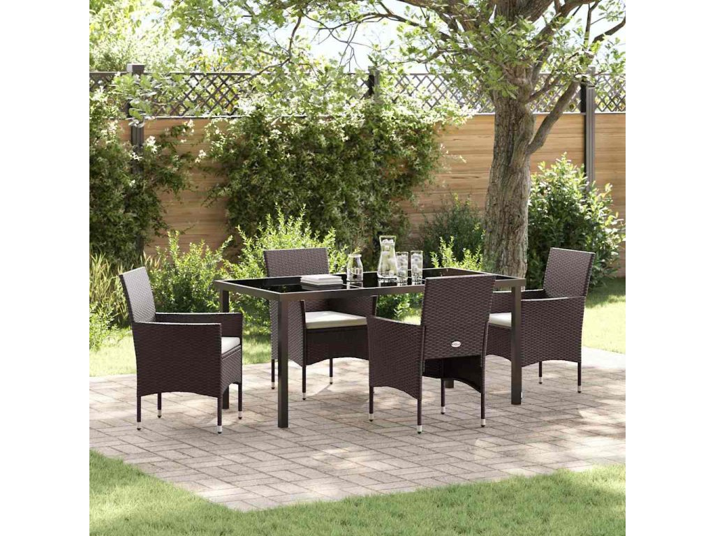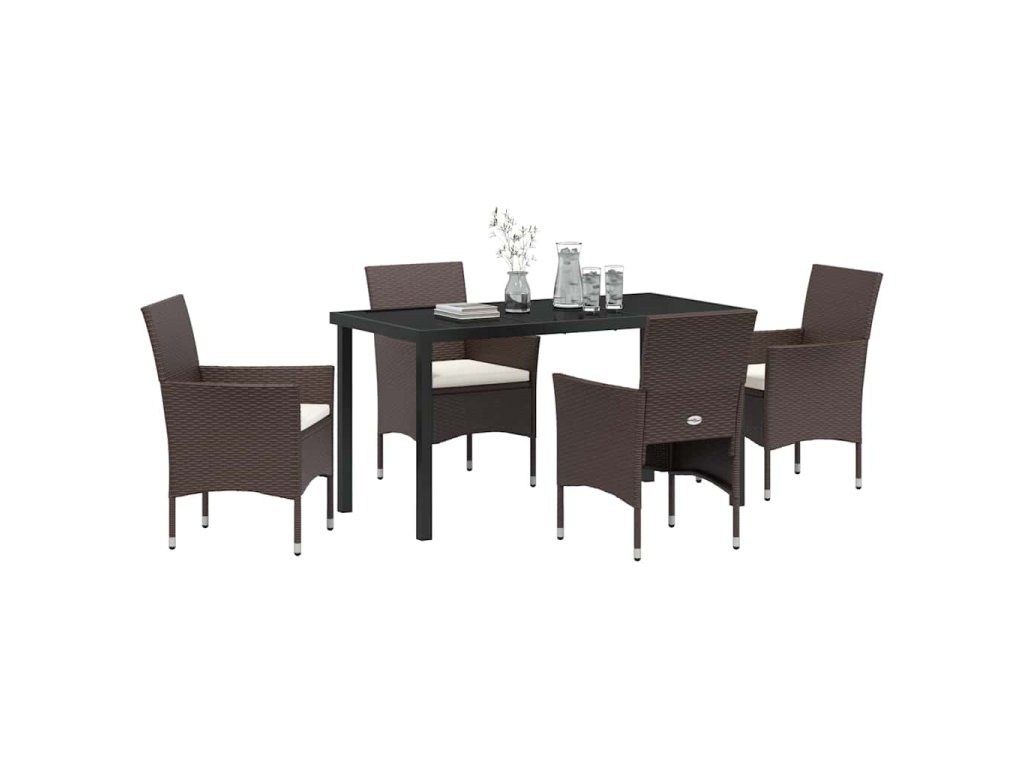 Zahradní jídelní souprava s polštářem 5 pcs Hnědá polyratan 3379746