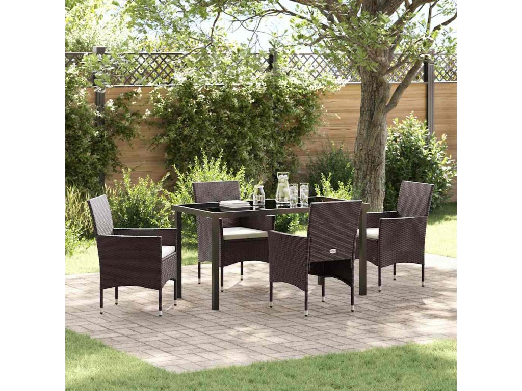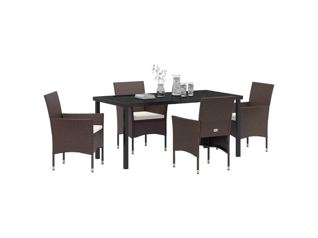 Zahradní jídelní souprava s polštářem 5 pcs Hnědá polyratan 3379747