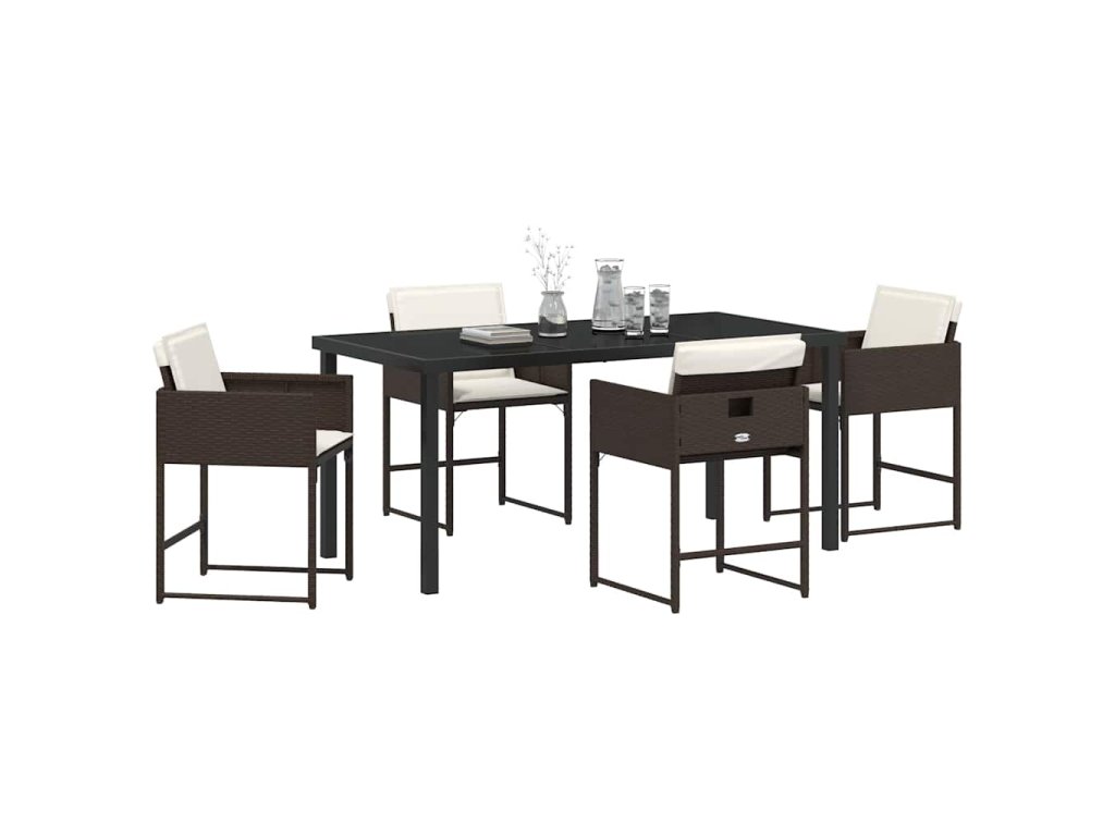 Zahradní jídelní souprava s polštářem 5 pcs Hnědá polyratan 3380018