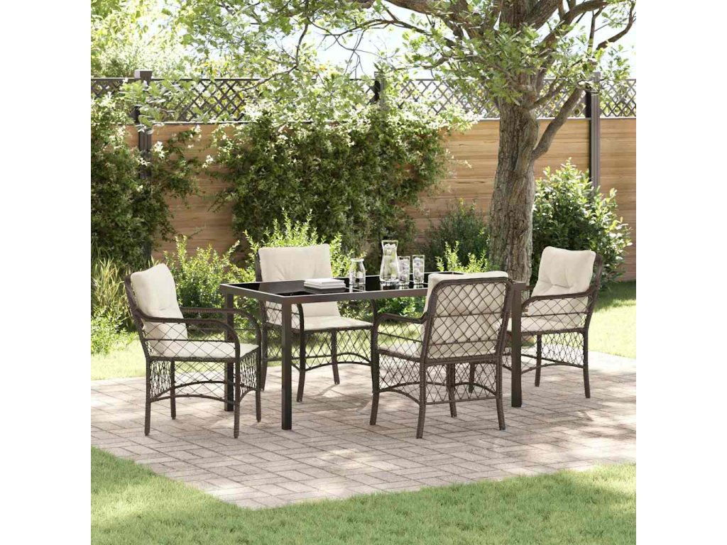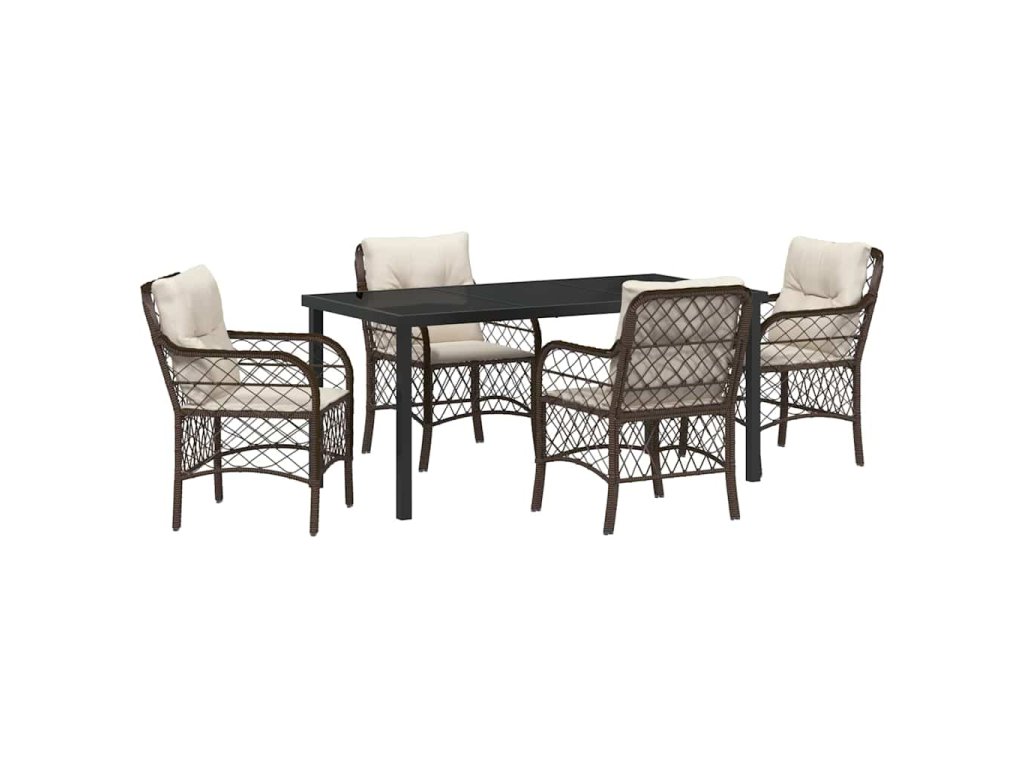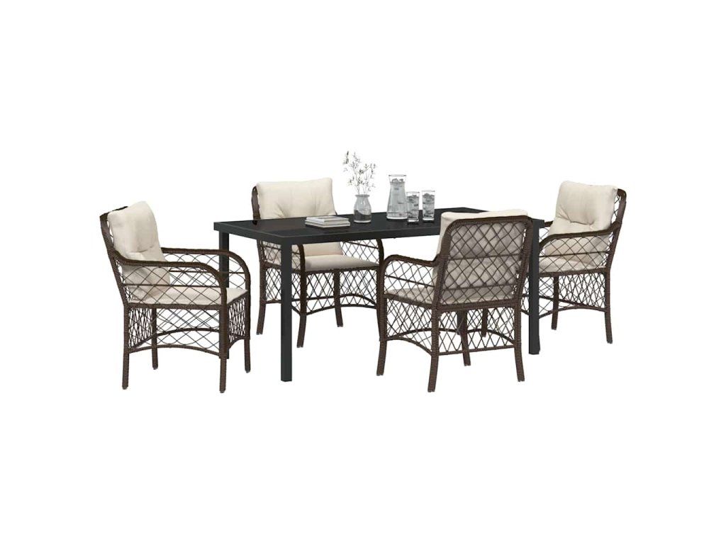 Zahradní jídelní souprava s polštářem 5 pcs Hnědá polyratan 3380214