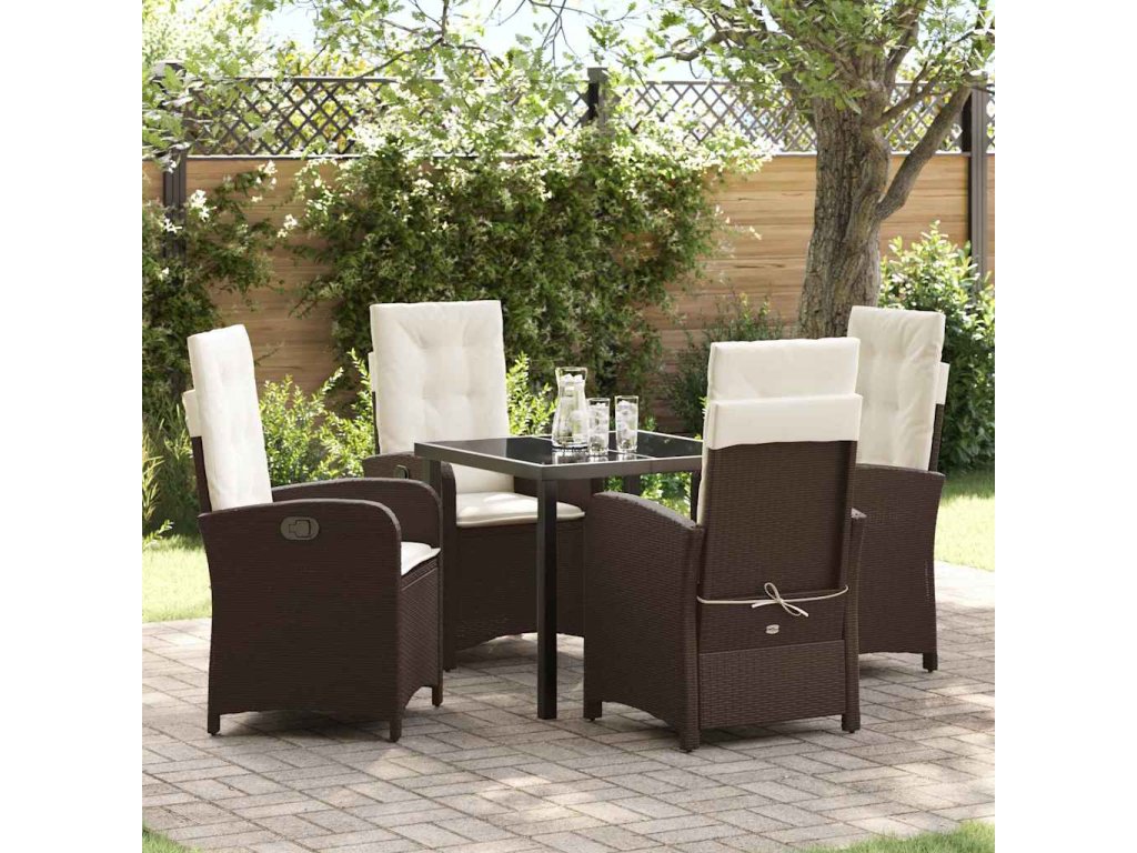 Zahradní jídelní souprava s polštářem 5 pcs Hnědá polyratan 3380268