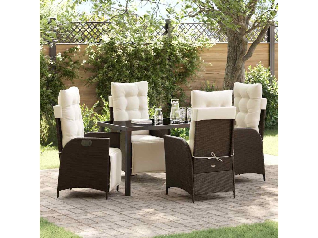 Zahradní jídelní souprava s polštářem 5 pcs Hnědá polyratan 3380542