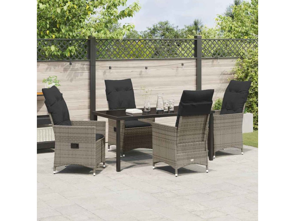 Zahradní jídelní souprava s polštářem 5 pcs Šedá Poly ratan 3379551