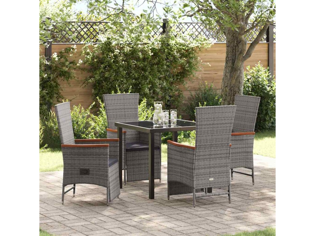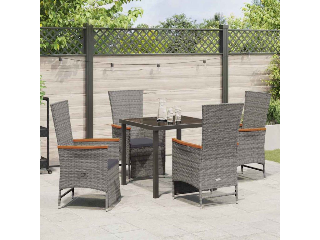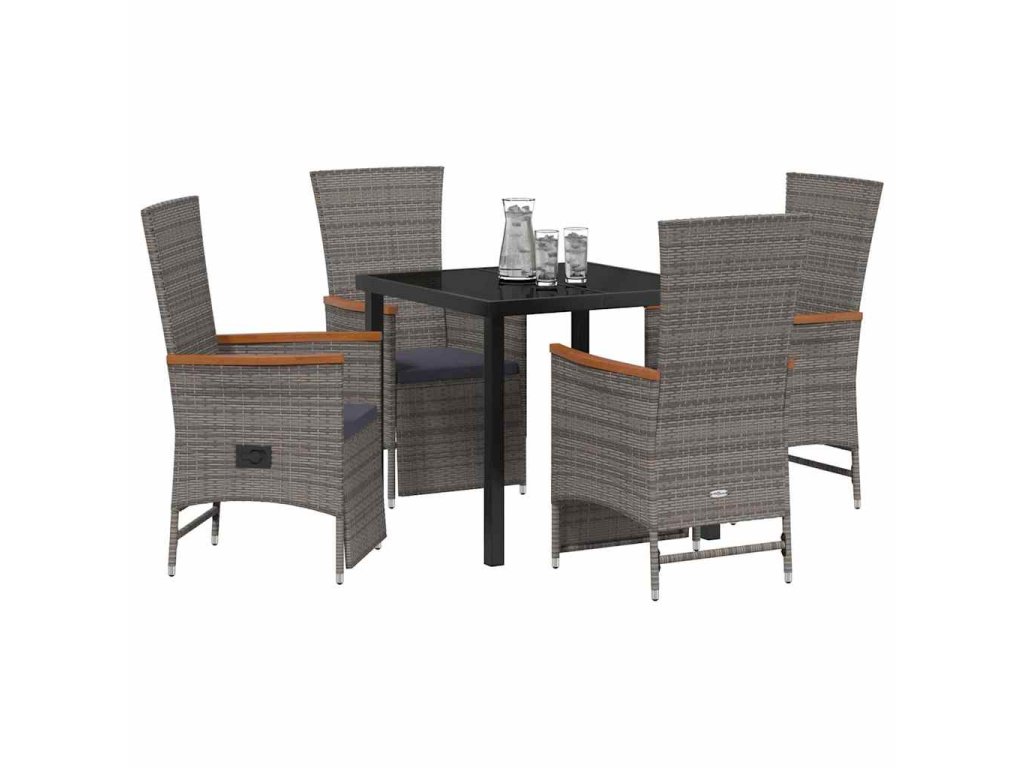 Zahradní jídelní souprava s polštářem 5 pcs Šedá polyratan 3379451