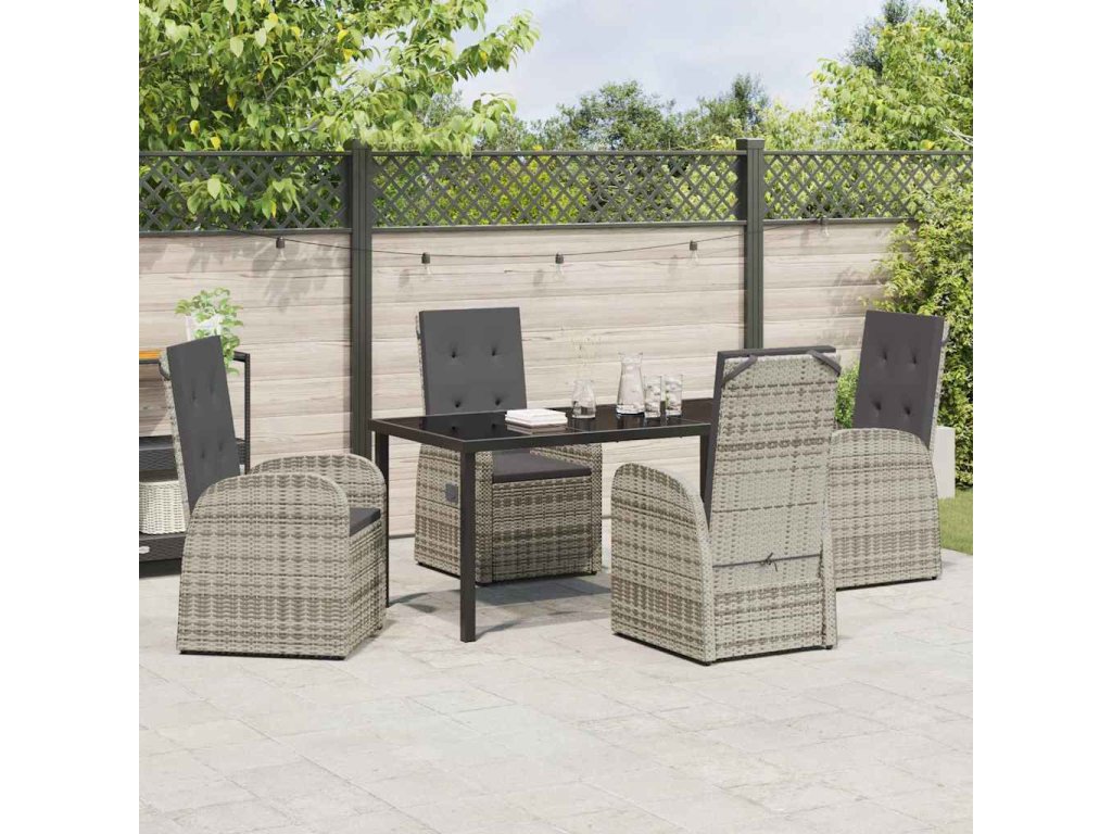 Zahradní jídelní souprava s polštářem 5 pcs Šedá polyratan 3379481
