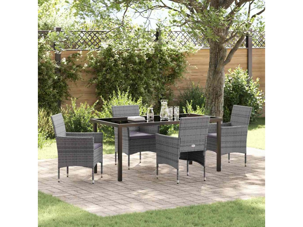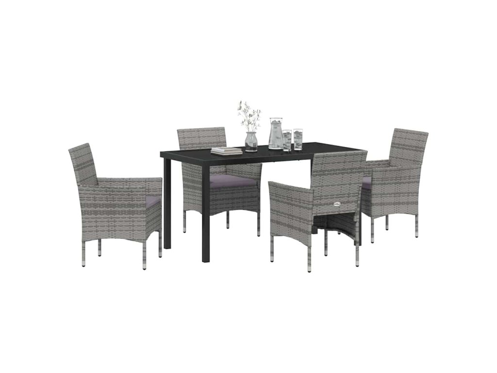 Zahradní jídelní souprava s polštářem 5 pcs Šedá polyratan 3379732