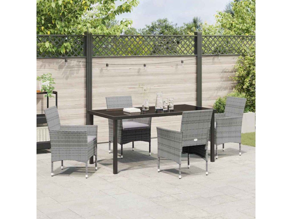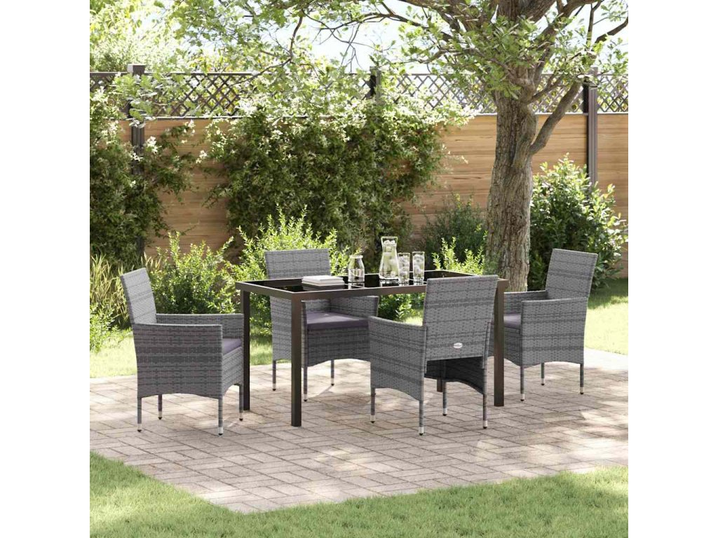 Zahradní jídelní souprava s polštářem 5 pcs Šedá polyratan 3379733