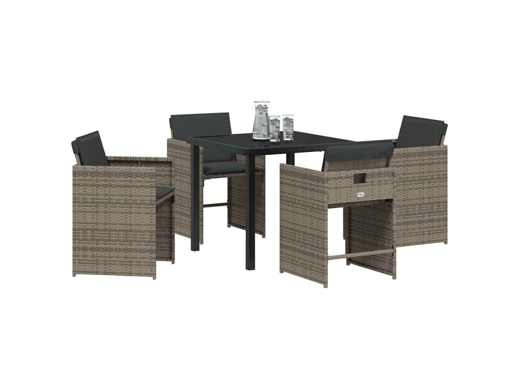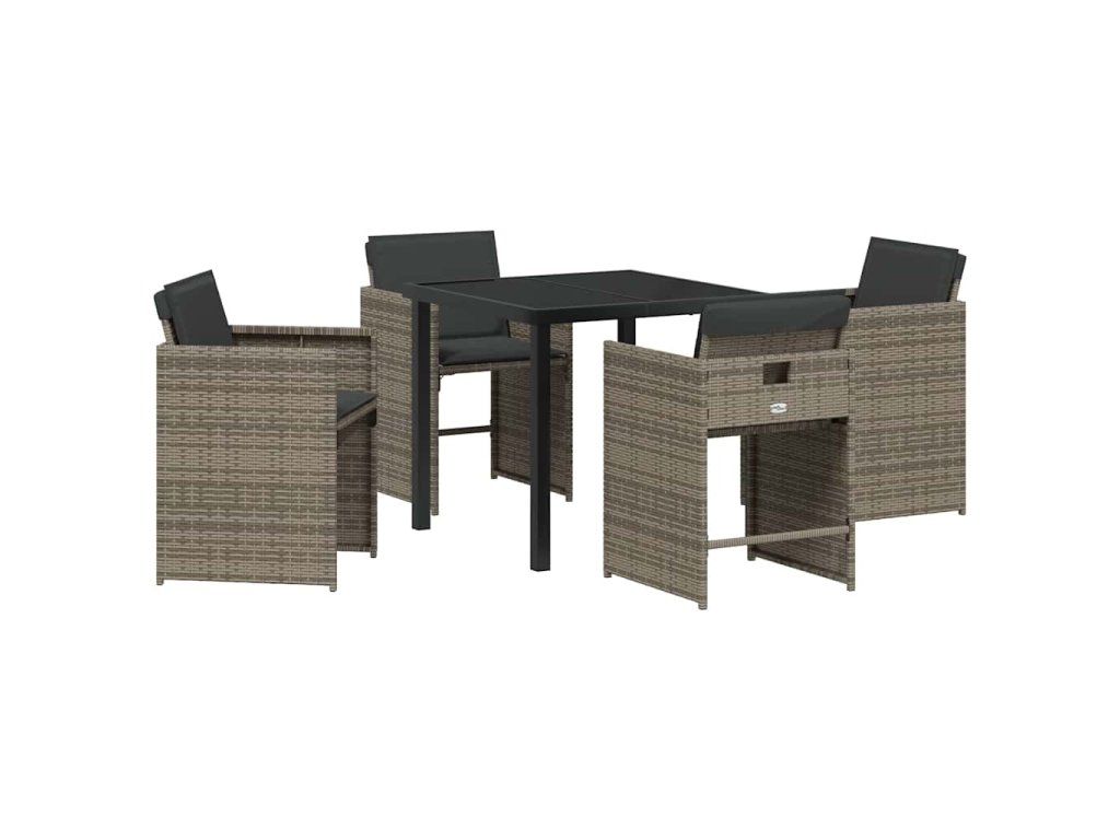 Zahradní jídelní souprava s polštářem 5 pcs Šedá polyratan 3379980