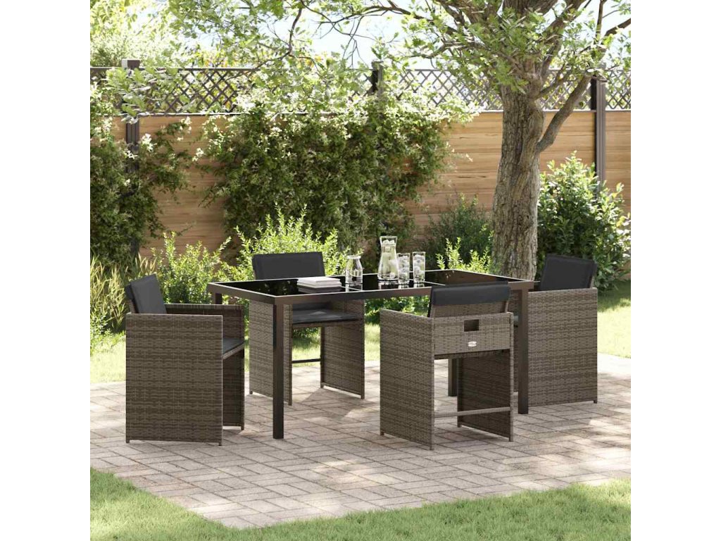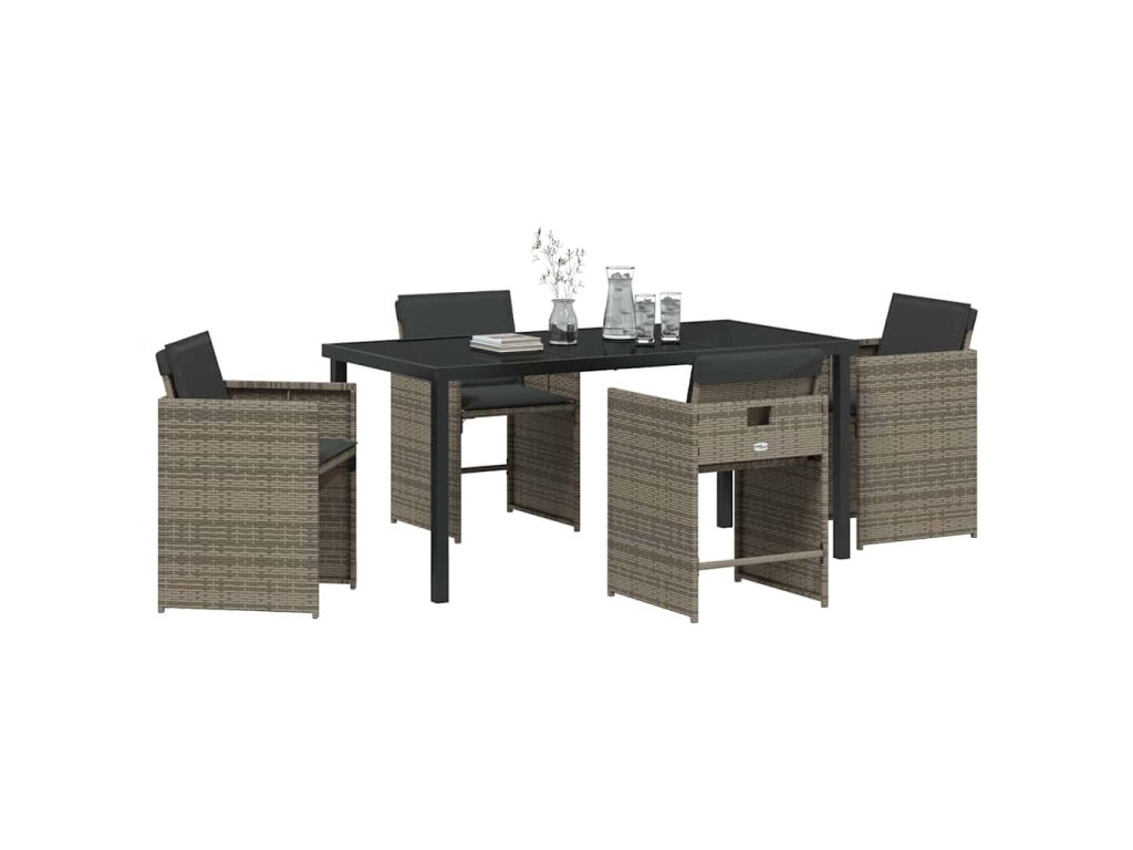 Zahradní jídelní souprava s polštářem 5 pcs Šedá polyratan 3379982