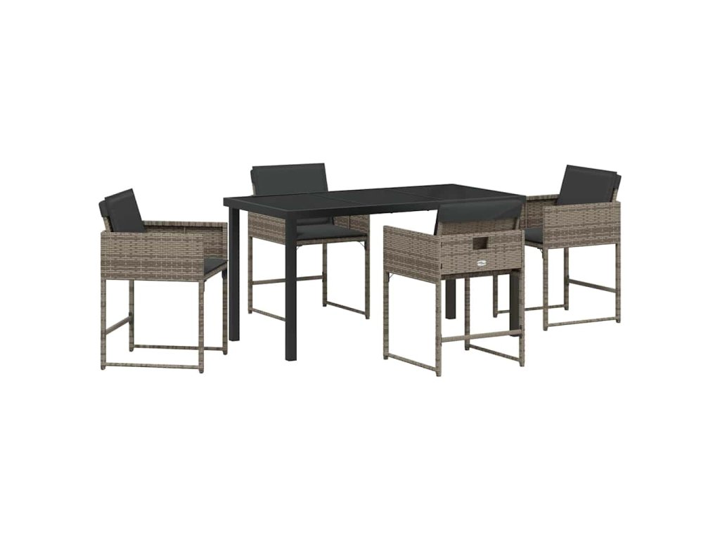 Zahradní jídelní souprava s polštářem 5 pcs Šedá polyratan 3380013