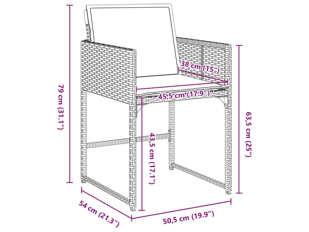 - 4 x Zahradní židle: 50,5 x 54 x 79 cm (D x Š x V)