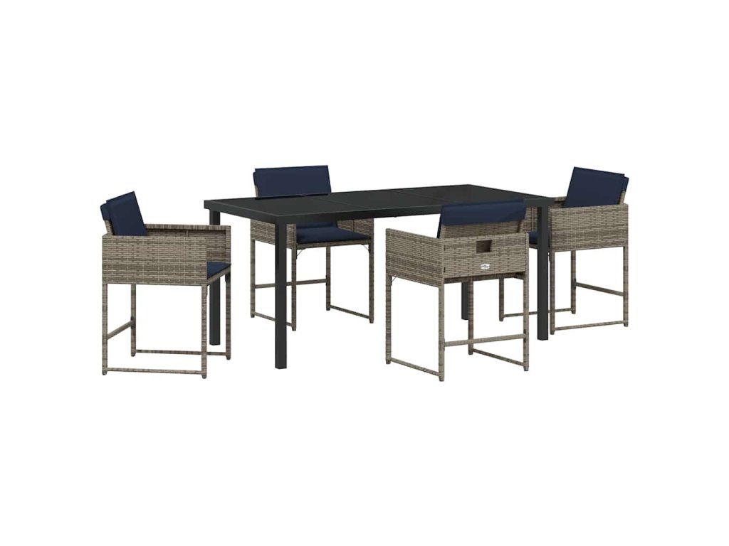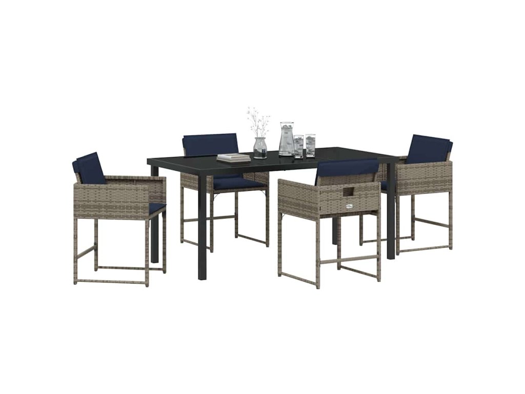 Zahradní jídelní souprava s polštářem 5 pcs Šedá polyratan 3380034