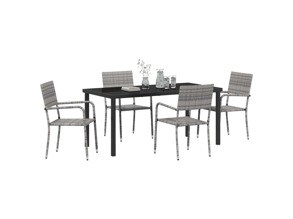 Zahradní jídelní souprava s polštářem 5 pcs Šedá polyratan 3380046