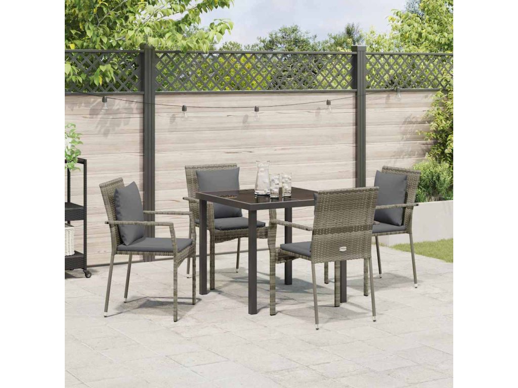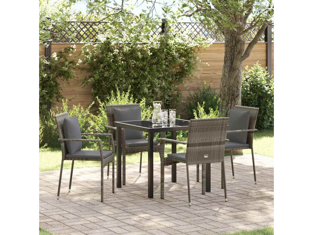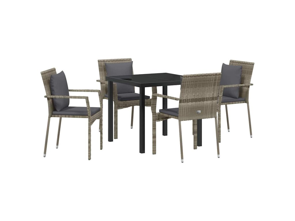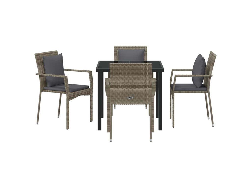 Zahradní jídelní souprava s polštářem 5 pcs Šedá polyratan 3380086