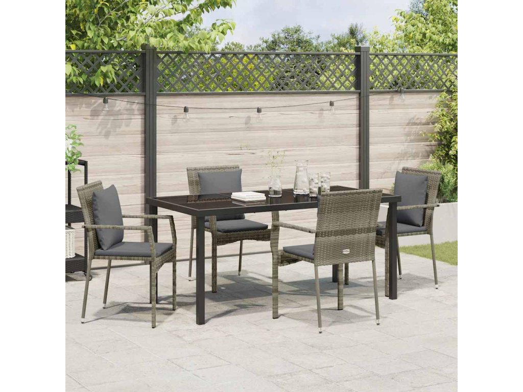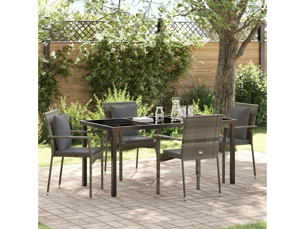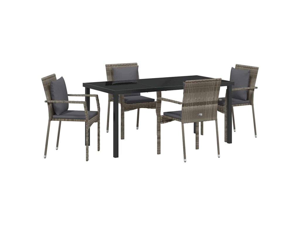 Zahradní jídelní souprava s polštářem 5 pcs Šedá polyratan 3380088