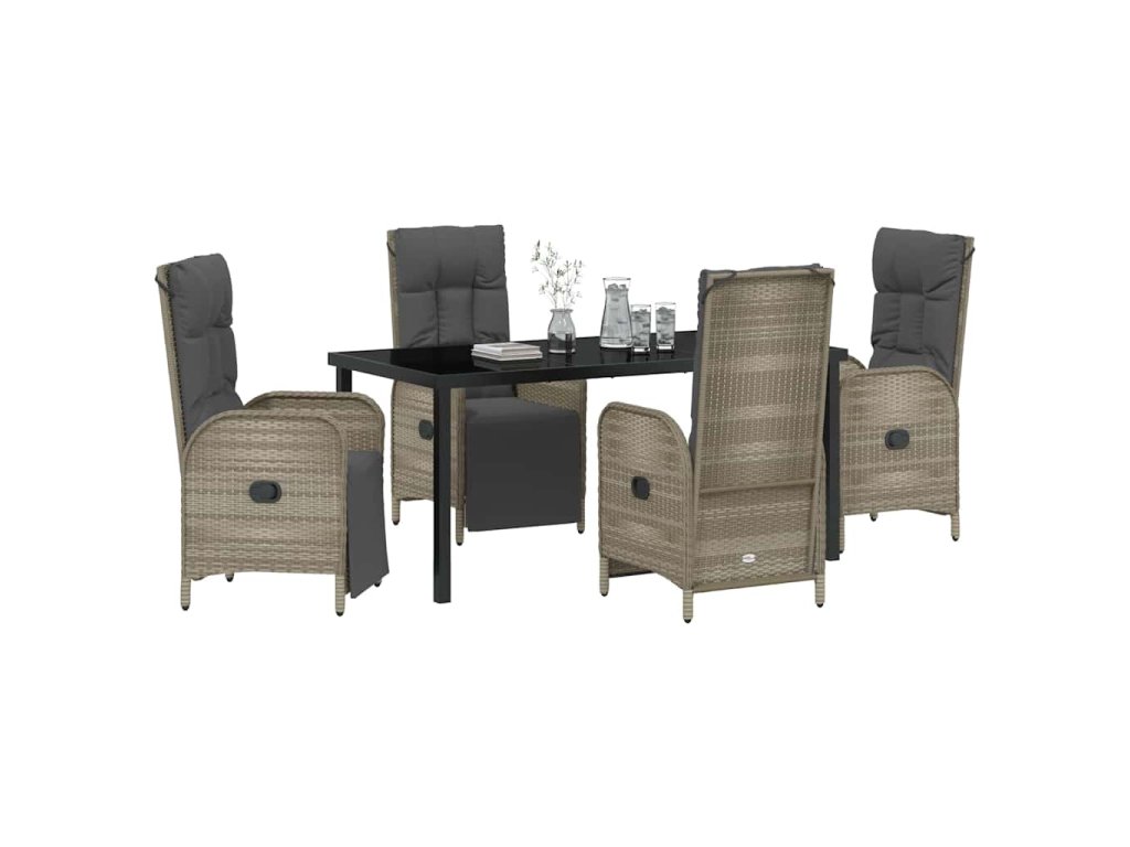 Zahradní jídelní souprava s polštářem 5 pcs Šedá polyratan 3380137