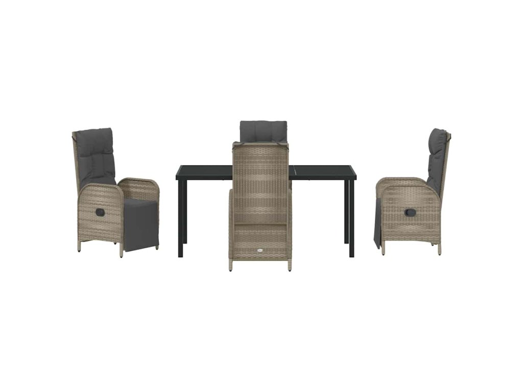 - Součásti: Každý kus má tvrzený skleněný stůl, který se lehce čistí a vypadá stylově. Poly ratanová sedadla s odolným polstrováním nabízejí pohodlí. Tato kombinace vylepšuje tvůj jídelní zážitek.