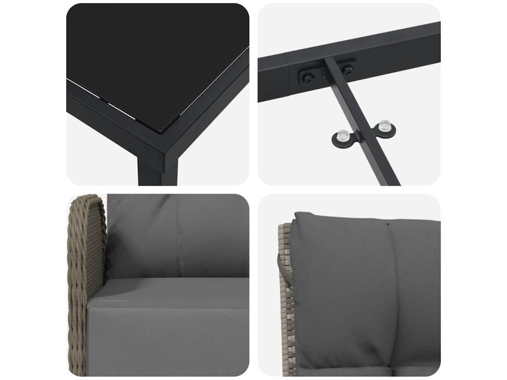 - Praktické využití: Ideální pro terasy, zahrady a balkony, tato souprava se hodí do různých venkovních místností. Její styl dobře ladí s moderním vzhledem, a tvoří skvělé místo pro zábavu pro hosty nebo užívání si klidných jídel venku.