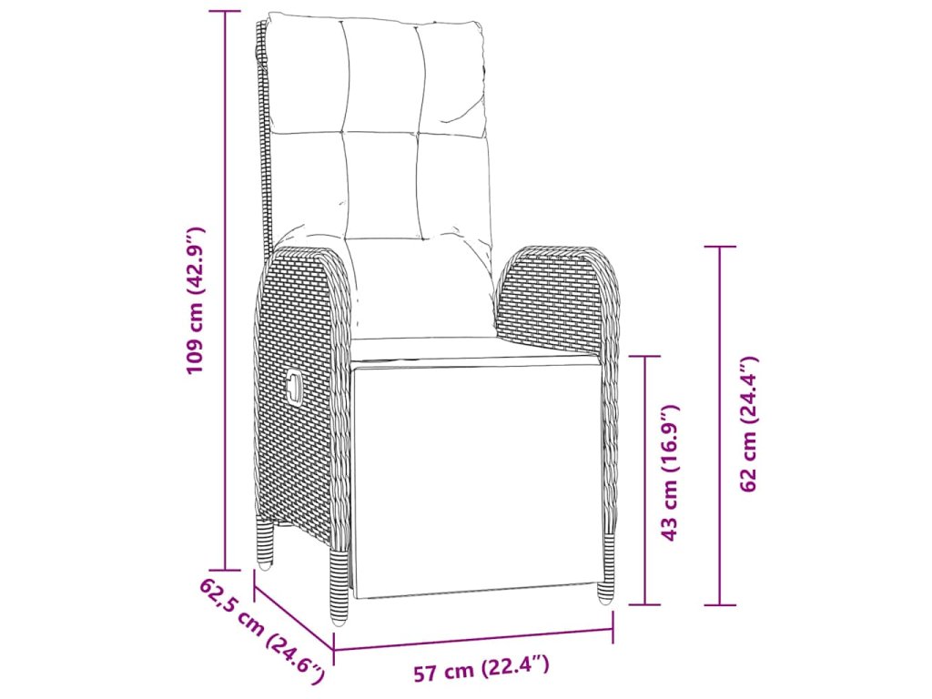 - 6 x Zahradní židle: 57 x 62.5 x 109 cm (D x Š x V)