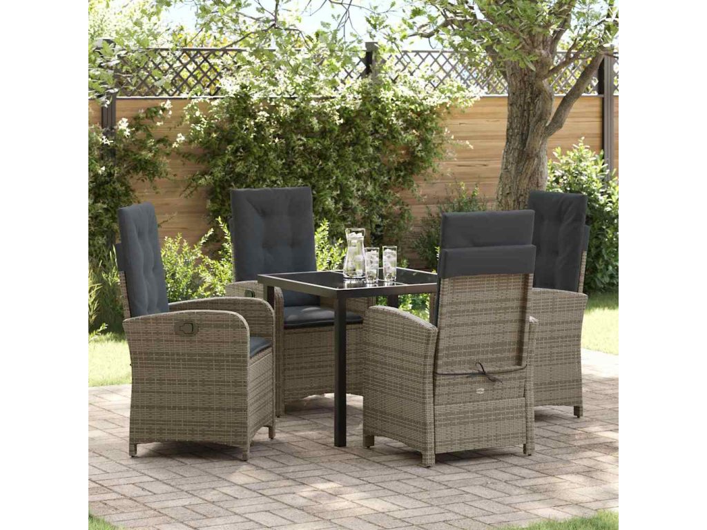 Zahradní jídelní souprava s polštářem 5 pcs Šedá polyratan 3380275
