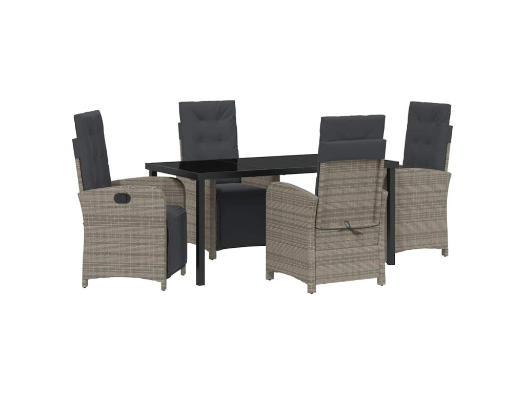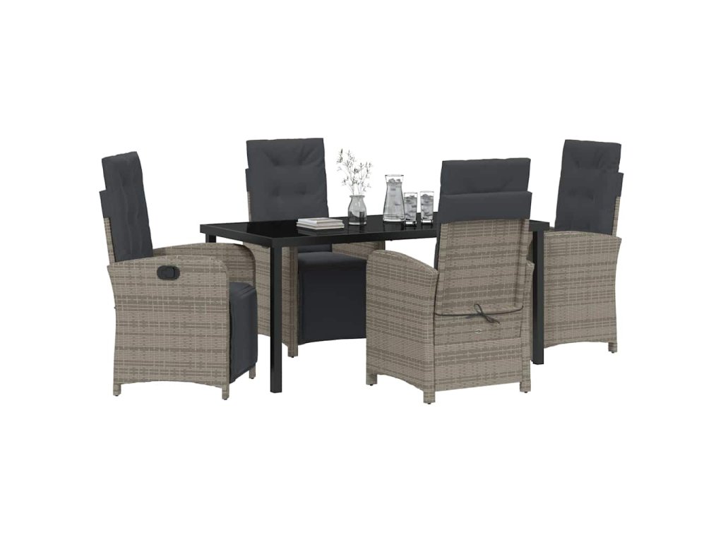- Funkční komponenty: Vyleštěná skleněná deska dodává setu styl a usnadňuje údržbu. Nastavitelné opěrky zad poskytují různé možnosti, jak si užít lenošení po jídle a přizpůsobují se potřebám vašich hostů.